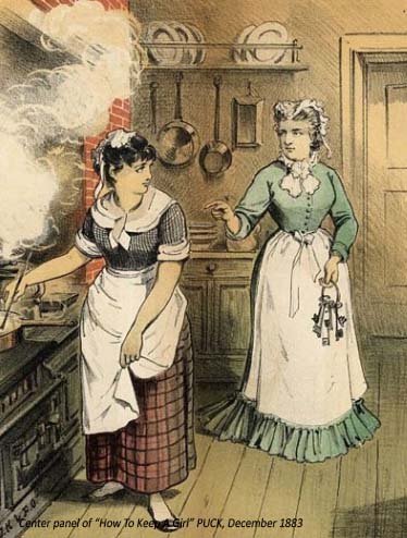 Однако с появляением плит от женщин стали ожидать большего кулинарного разнообразия. Женщины уже не могли приготовить обед в одном котелке над очагом. Теперь надо было изобретать что-то на шесть-восемь-десять комфорок. Мужчины стали ждать от жен обедов из пяти-шести блюд, а при гостях и того больше. В своем справочнике по домоводству Кэтрин Бичер описывала типичный обед для гостей: суп, рыба, окорок, индейка с устричным соусом, три жареных утки, устрицы, гарнир из картофеля, гарнир из овощей, а на десерт пудинг, пирожные, фрукты и кофе. Дни, когда женщина могла оборудовать кухню несколькими котелками и вертелом, безвозвратно ушли. Промышленность стала изготавливать всякие штуки для кухни типа выдавливателя косточек из вишен и овощечистки. В 1850 каталог магазина кухонных принадлежностей в Филадельфии насчитывал 250 разных наименований.