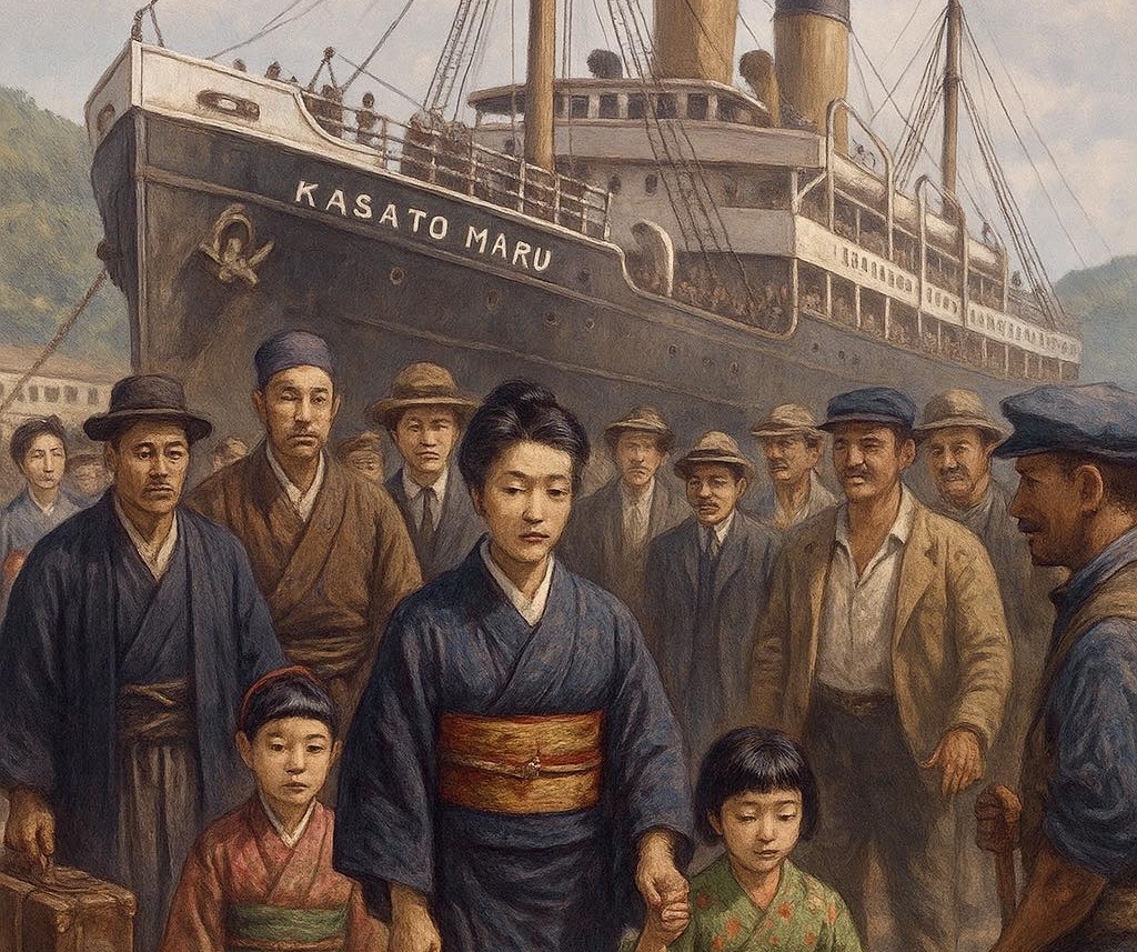 Касато Мару отплыла из порте Кобе 28 апреля 1908 года. Пусть предстоял неблизкий – 18000 миль через Тихий океан, вокруг Мыса Доброй Надежды и снова на север. 52 дня в море. Наверняка иммигрантам было тяжело друг у друга на головах, но они были полны надежд.